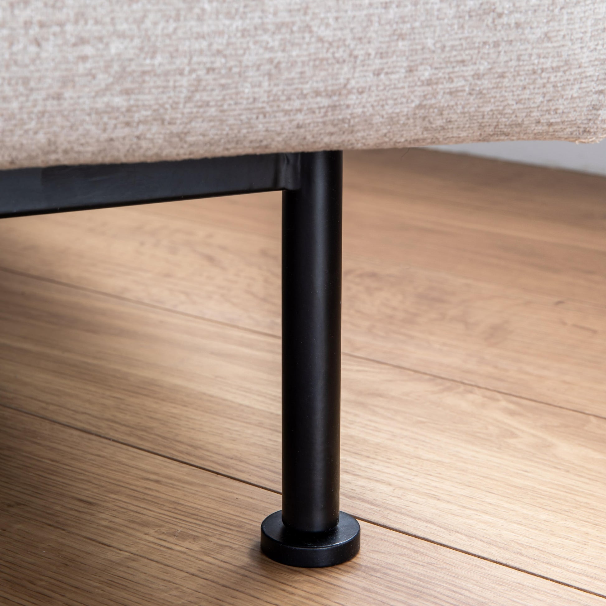 やわらかなファブリック生地に、すっきりとしたスチール脚を合わせたデザインで、重たく見えすぎず、お部屋にほどよくなじみます。カラーはベージュ・グレー・ダークグレー・ブラックの4色展開。空間や好みに合わせて選べます。