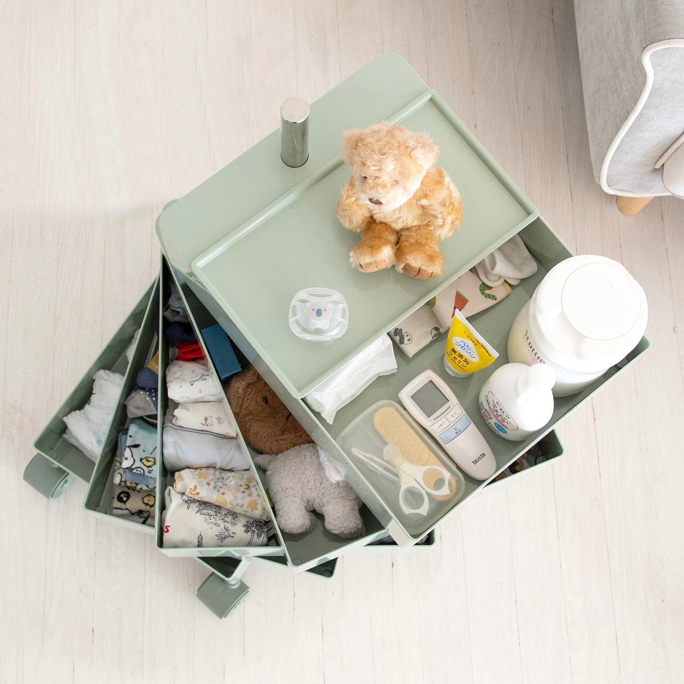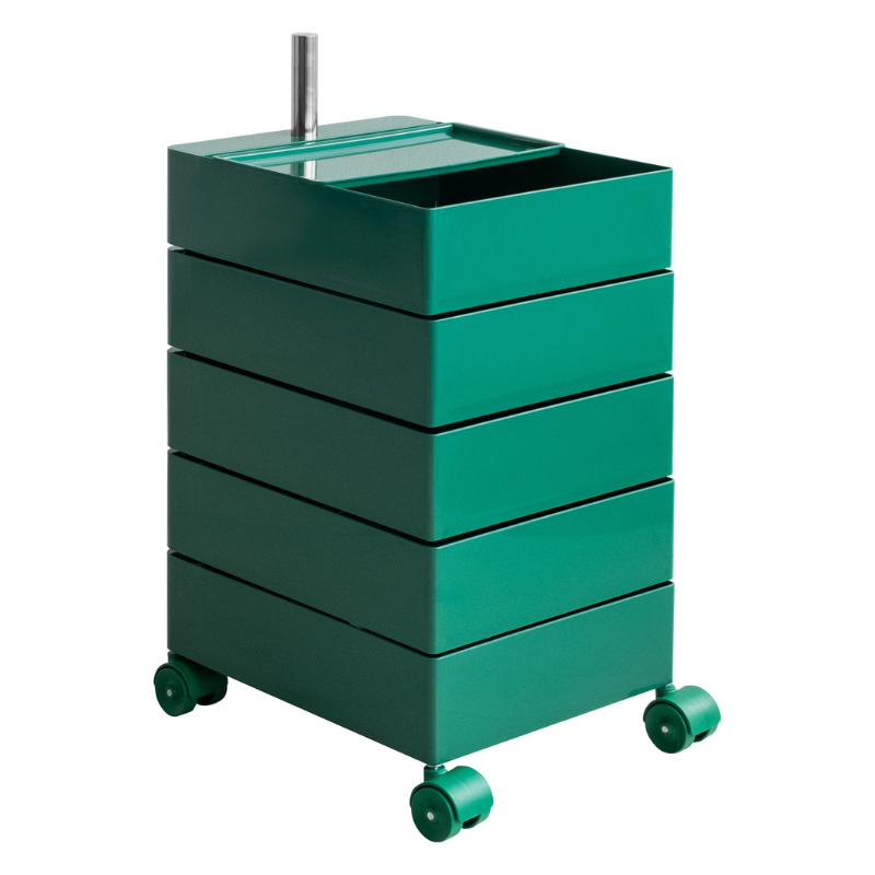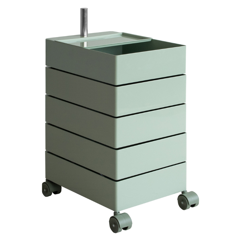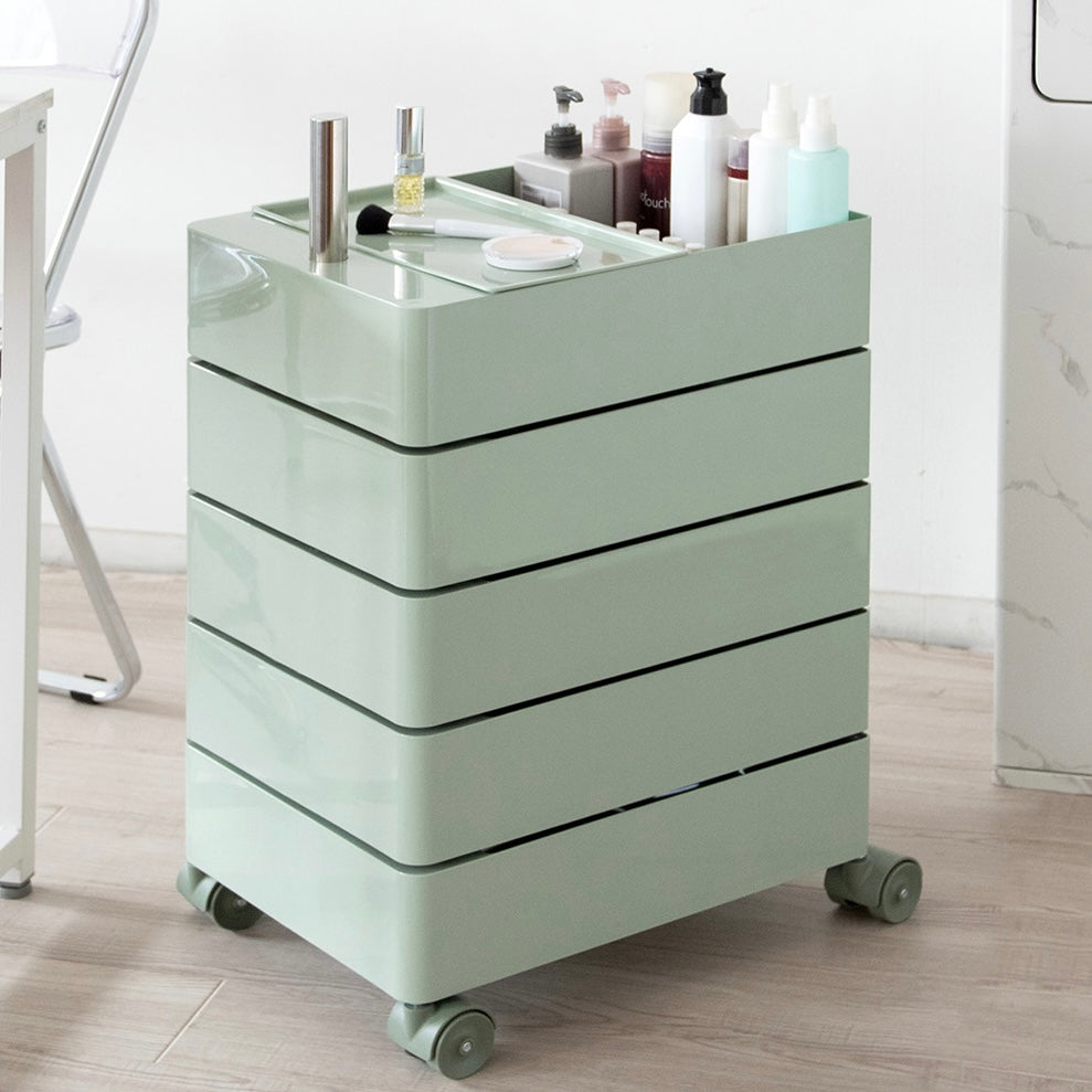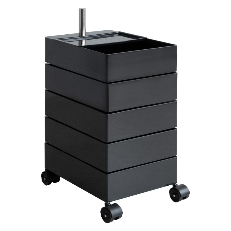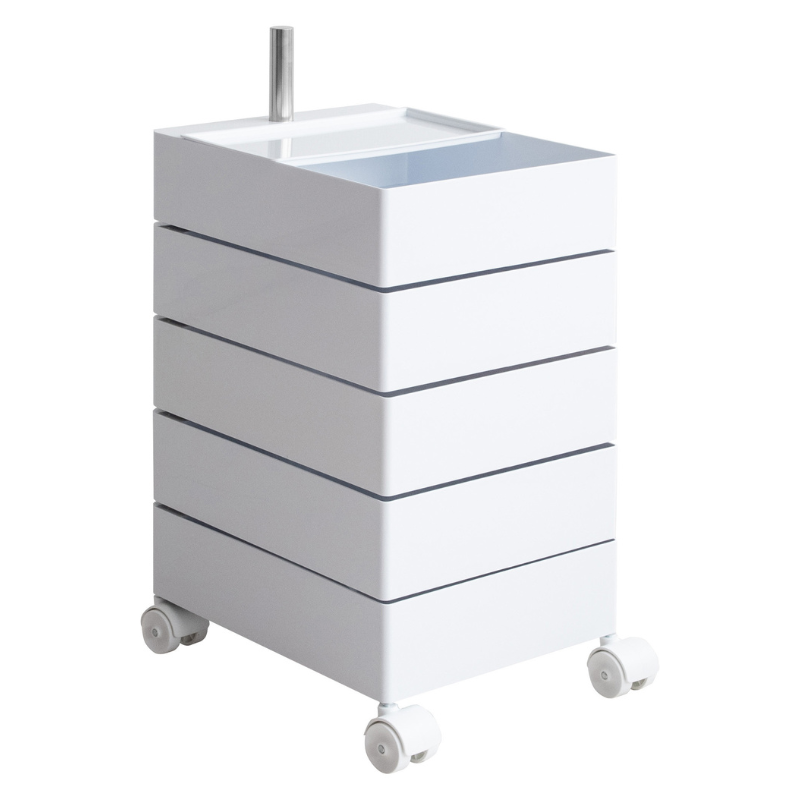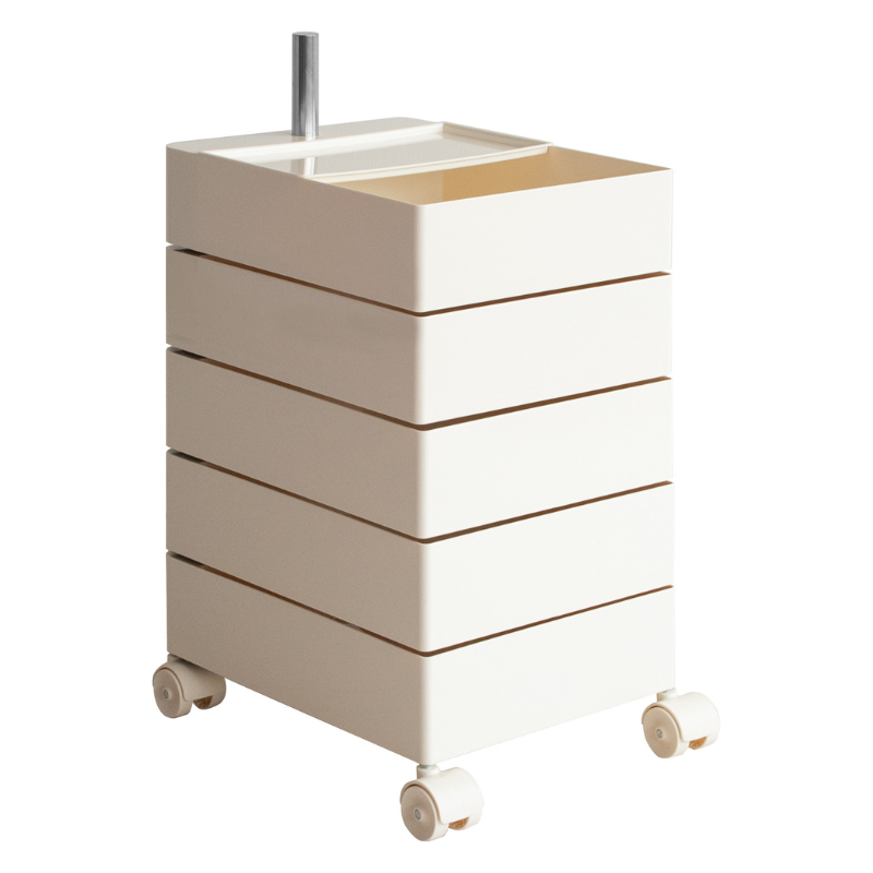 キャスター付きで5段式の収納が付いた、サイドテーブルにもなるワゴンです。