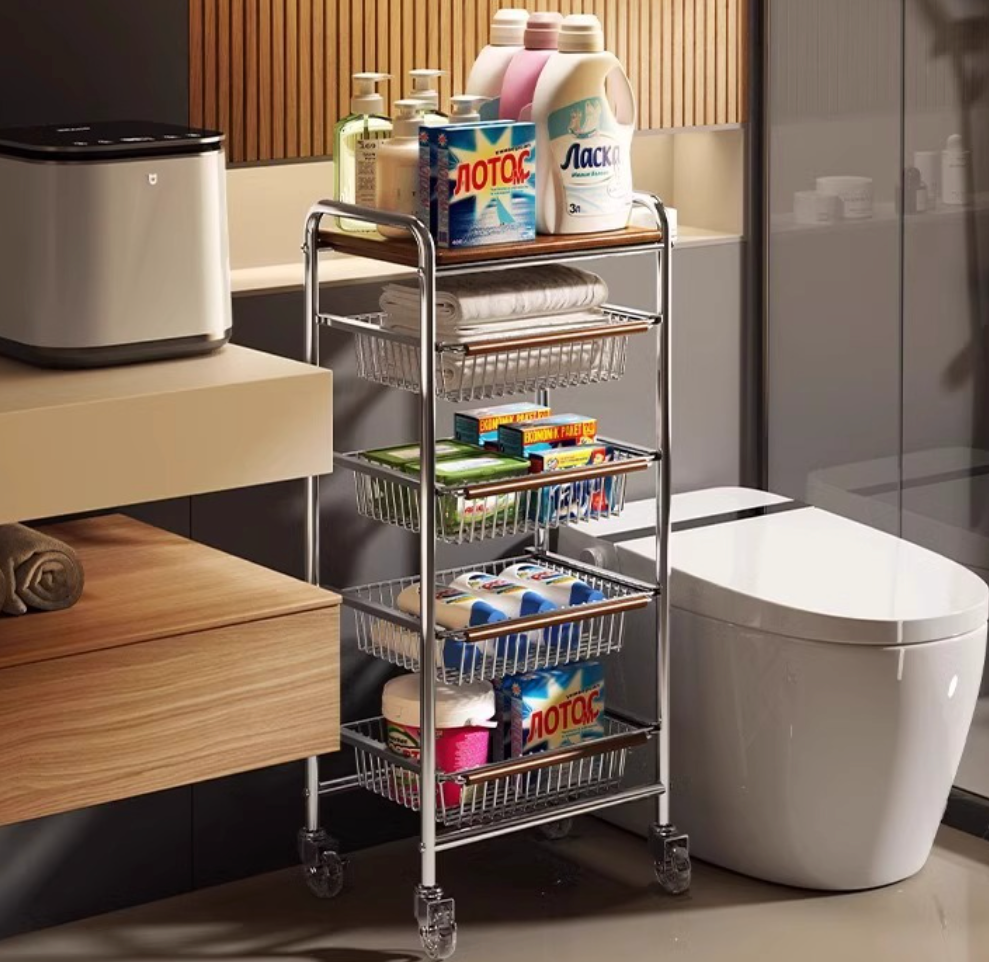 リビングではソファ横のサイドテーブルとして飲み物や雑誌を置いたり、キッチンでは調味料や食品を整理したりと、日常の中で便利に活用できます。ダイニングでは食器やドリンクを運ぶワゴンとして、浴室ではタオルやアメニティ収納にもぴったりです。