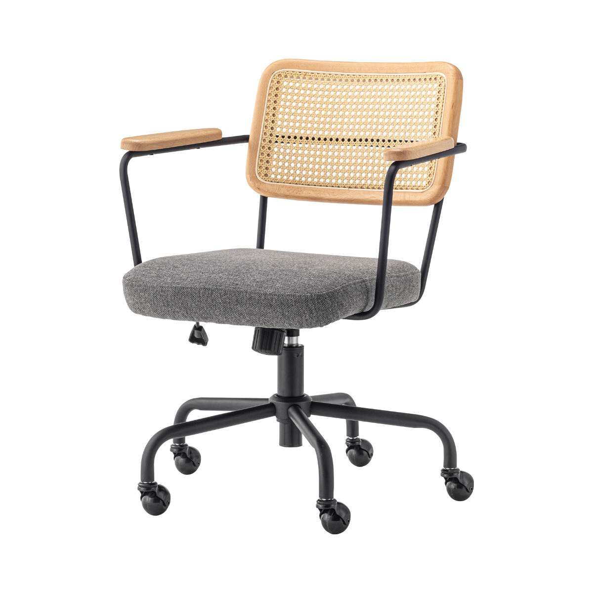 背もたれにはラタン風のデザインを取り入れ、空間のアクセントになりつつ、重たく見えない軽やかな印象に仕上げています。カラーはシルバー、ブラック、ブラウンの3色展開です。